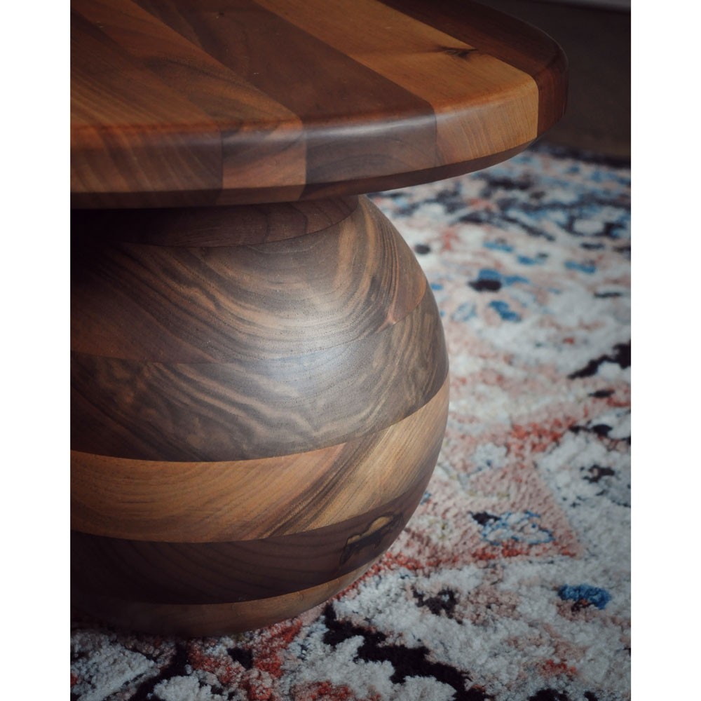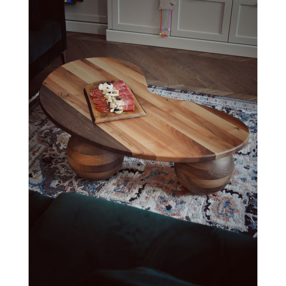 Gravitas je klub sto zamišljen kao komad nameštaja koji se koristi svaki dan, ali se doživljava kao mala skulptura u prostoru. Napravljen je od tamnog (parenog) oraha. Ploča je nepravilnog oblika i nije simetrična. Dužine je 120 i širine 70 cm. Sto se oslanja na tri pune drvene kugle koje čine njegovo postolje — stabilne, masivne i vizuelno upečatljive. Možeš mu prići sa bilo koje strane, pomerati ga po prostoru, koristiti ga kako ti u tom trenutku odgovara. On se prilagođava prostoru, a ne obrnuto. Sa visinom od približno 32 cm, Gravitas je savršeno proporcionalan za dnevni boravak — nenametljiv, ali prisutan.